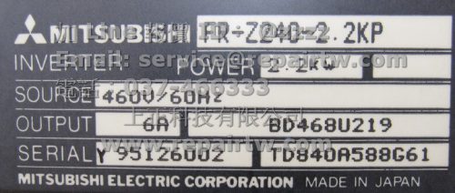首頁 --» 商品 --» Mitsubishi(三菱) --» 變頻器(Inverter) --» FR-Z200系列
