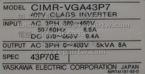 首頁 --» 商品 --» Yaskawa(安川) --» 變頻器(Inverter) --» 676VG3系列
