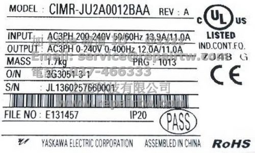 首頁 --» 商品 --» Yaskawa(安川) --» 變頻器(Inverter) --» J1000系列