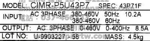 首頁 --» 商品 --» Yaskawa(安川) --» 變頻器(Inverter) --» P5系列