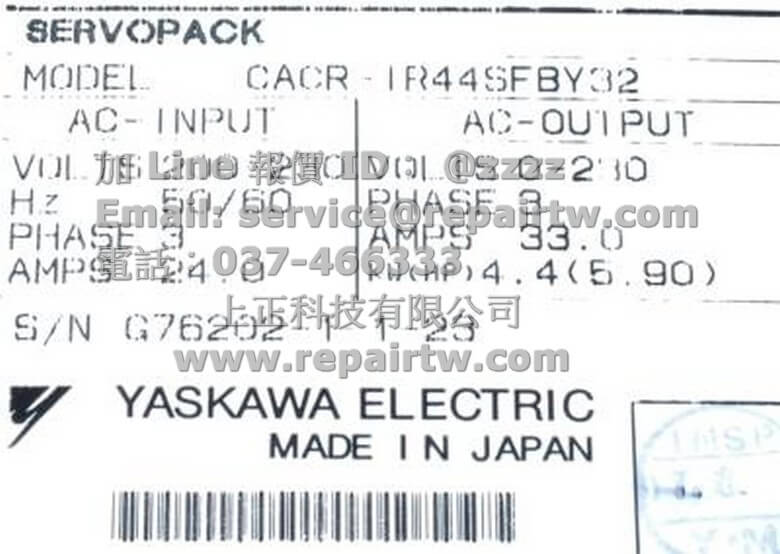 首頁 --» 商品 --» Yaskawa(安川) --» 伺服驅動器(SERVOPACK) --» Other系列 --» CACR-IR44SFB-Y32