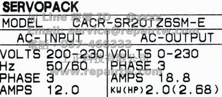 首頁 --» 商品 --» Yaskawa(安川) --» 伺服驅動器(SERVOPACK) --» Other系列 --» CACR-SR20TZ6SM-E