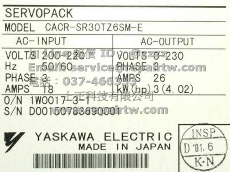 首頁 --» 商品 --» Yaskawa(安川) --» 伺服驅動器(SERVOPACK) --» Other系列 --» CACR-SR30TZ6SM-E