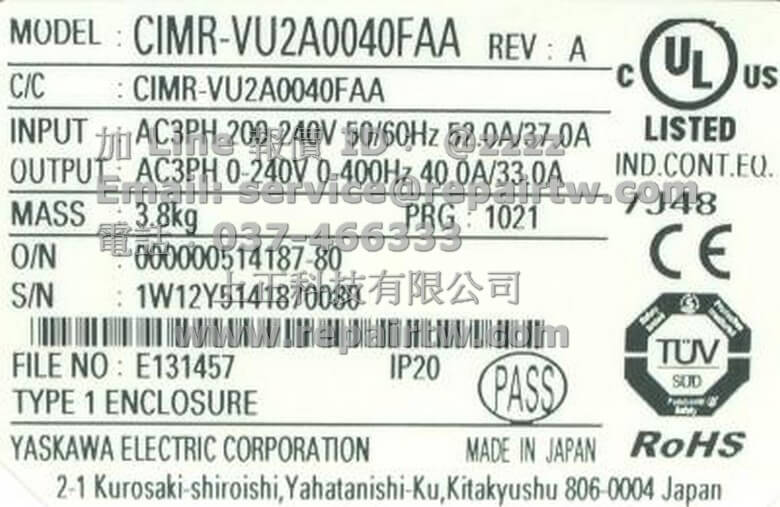 CIMR-VU2A0040FAA 新品 販售CIMR-VU2A0040FAA 中古、二手 販售CIMR-VU2A0040FAA 維修、檢修 |